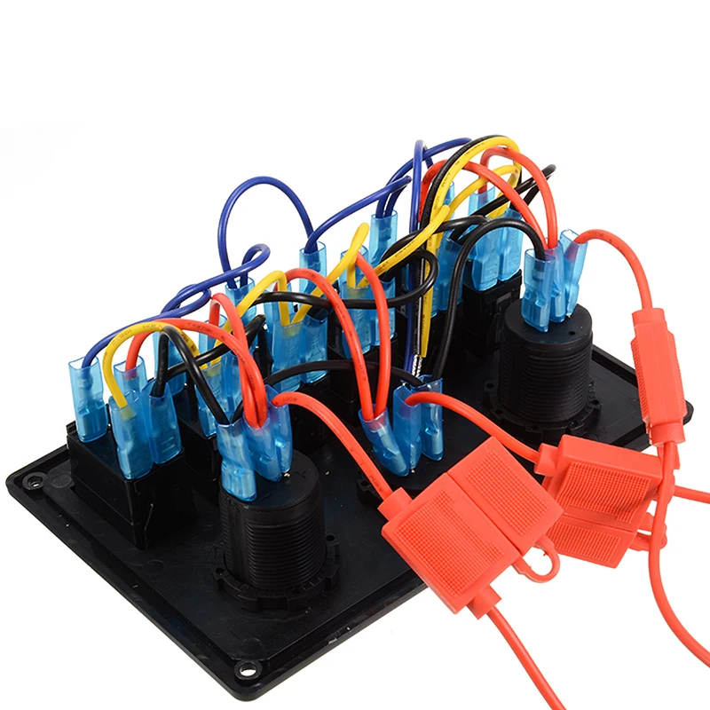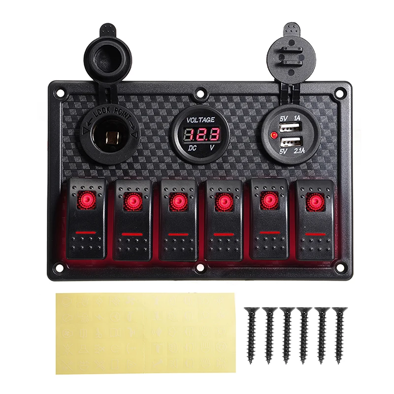 6 Gang Red LED Car Switch Panel 12V 24V Circuit Breakers Overload Protect Boat Rocker Switch Contro