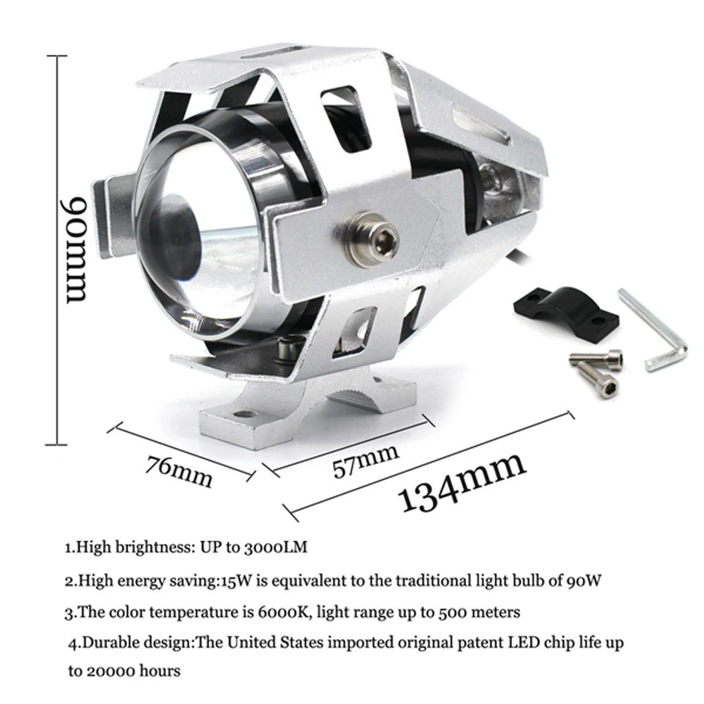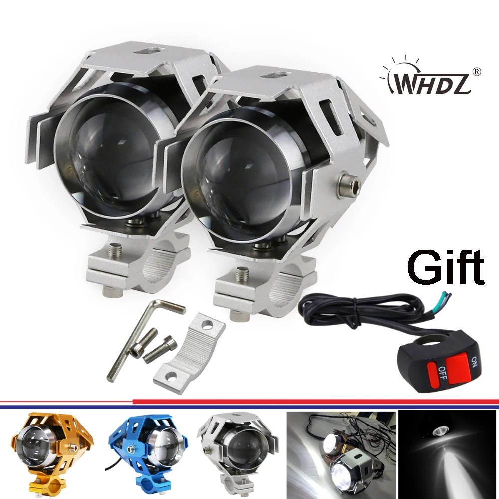2 x 125W U5 Motorcycle LED Driving Fog Head Spot Light with high beam low beam flash beam Headlight