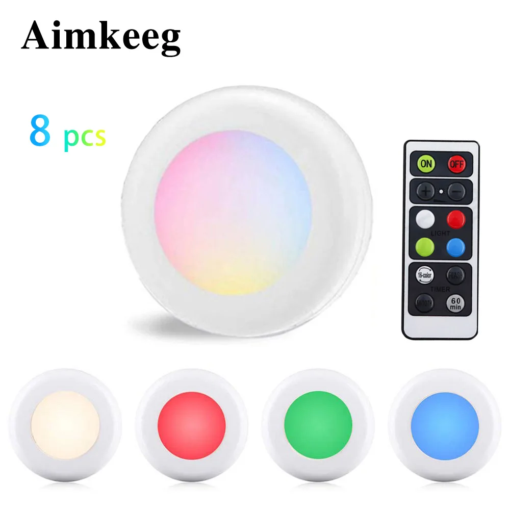 Aimkeeg LED Cabinet Light Wireless Dimmable Touch Night Lights RGB 16Colors Battery Powered Wall La