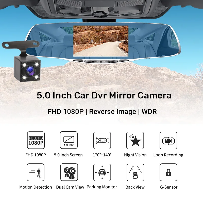 E-ACE Car DVR 5"/4.3" Camera Full HD 1080P Dual Lens Rearview Mirror Camcorder Auto Video Registrat