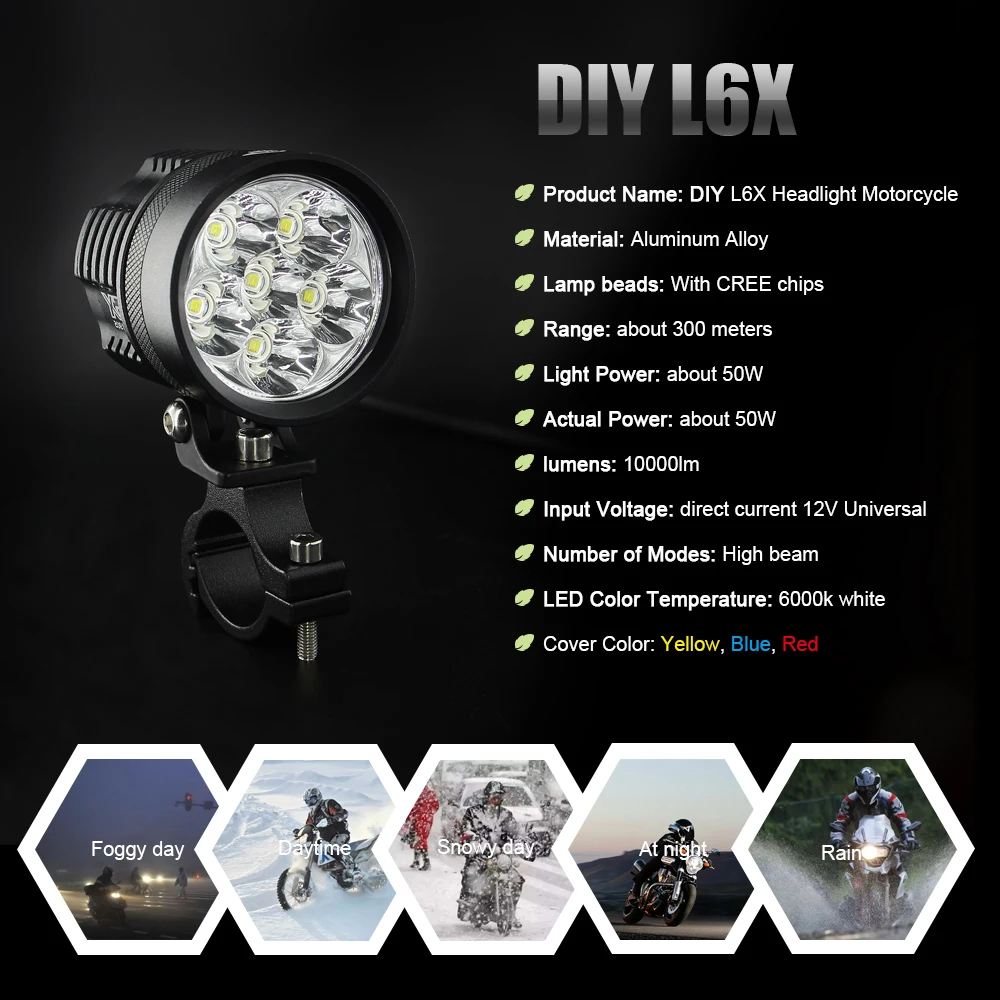 SAARMAT Dual-Color white yellow motorcycle headlight led with Cree chip DRL Fog lights Scooter Spot